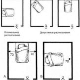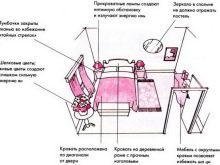 Another important rule for bedding is the ban on its placement along the walls adjacent to the kitchens, bathrooms and bathrooms. The work of kitchen appliances, the hum of water and sewer pipes significantly interfere with vacationers.