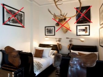 It is necessary to remove paintings from the walls with the image of a grin of animals, stuffed animals and portraits of close relatives. This moment is very important when arranging a sleeping place, since no one should look at a sleeping person.