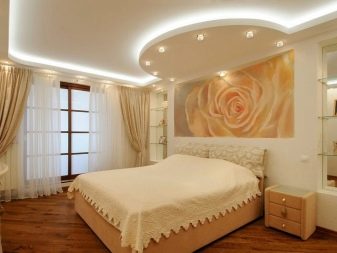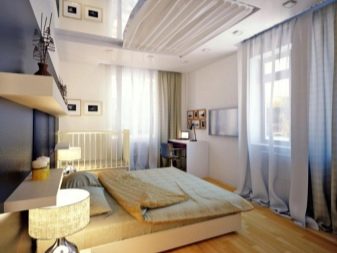 It is not recommended that beds be placed in places where something hangs overhead. In this regard, large low-hanging chandeliers should be removed from the bedroom, replacing them with neat ceiling lights with diffused light.