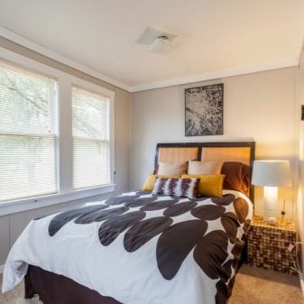 Nobody really thought about the size and shape of the rooms at that time, and therefore the installation of a bed in a small square is still very relevant for many today. It is especially difficult to place a double bed in a narrow bedroom, the width of which does not allow you to put it headboard to a long wall.