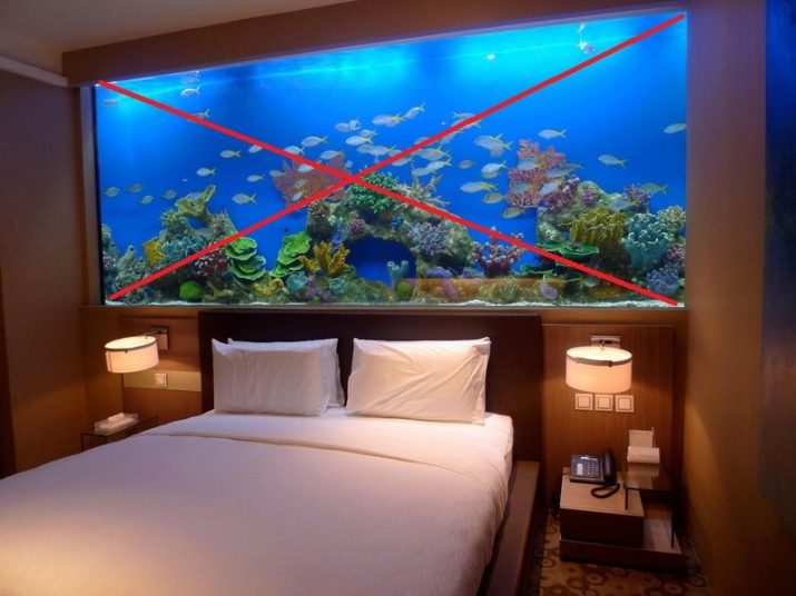 Another important condition when choosing a place for a bed is the lack of aquariums and home fountains in the immediate vicinity. Such items are best installed in living rooms, where they will have a calming effect on others and attract wealth to the house. If water elements are located near the bed, then they can provoke fluidity and instability in family relationships, which can lead to discord between the spouses.