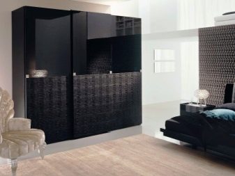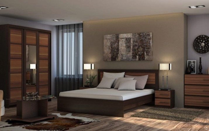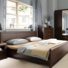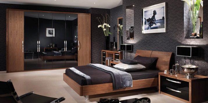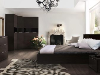 All these tones will advantageously beat light shades of the floor, walls and ceiling of the bedroom. If you are still unhappy with the dark furniture, then you can successfully decorate it with chrome fittings, use glass inserts or metal racks.