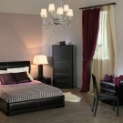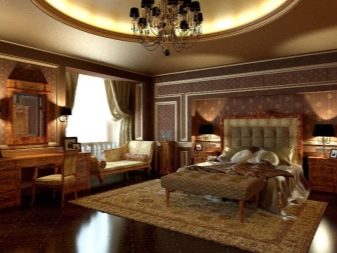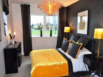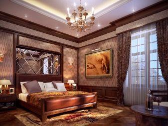 If the bedroom with dark furniture is decorated in a classic style, you need to purchase a crystal, sometimes even pompous chandelier. But with a more modern design, it is better to stay on ceiling chandeliers. When the chandelier is not enough for lighting, you will have to install additional ceiling lights.