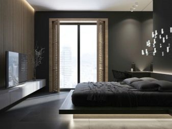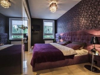 But if there are several windows in the bedroom, you can restrict yourself to spotlights on the ceiling. This is very convenient if the room has suspended ceilings. Such lighting will create a special emphasis on the overall dark background.