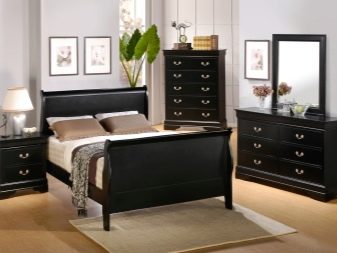 - Dark colored furniture always saves space. This is very true in small bedrooms. The dark, even black color of the bed, wardrobe, bedside tables reduces them externally, they do not become as bulky as they seemed when buying.