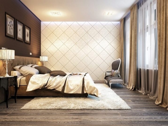 - if the bedroom has a dark laminate, then it is better to lay a carpet on it in light shades;