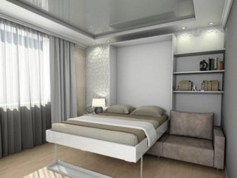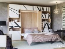 Combined devices contain not only sliding mechanisms and heterogeneous layout systems. As additions, shelves and racks are used. Solutions of this kind are great when the room is irregularly shaped or very small. As an alternative, sometimes hanging furniture is also used. Beds of this type are funny and original.