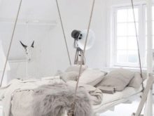 The vast majority of them are made of wood, although you can find models of lighter materials. The use of strong chains or ropes helps to make the interior more original. Sometimes the space under the bottom is used to store various items.