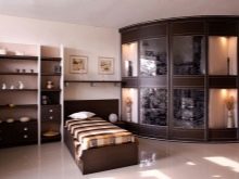 Using compact recessed furniture can be beneficial not only because of space savings. With their help, you can create a convenient set for yourself. All types of built-in kits are divided into stationary and transforming. In any case, you need to check that different objects are clearly consistent with each other. Usually in the bedrooms they put:
