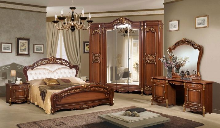 And here you can see how the furniture looks in the old-fashioned interior, associated with the Baroque era. Carved elements, gilding and a noble dark tone of wood immediately adjust to the desired mood.