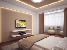 In large rooms, you can use the central chandelier, but it should have a neutral color, the correct geometric shape and be as close as possible to the ceiling. Lighting allocates a sleep zone by installing floor lamps, sconces or guiding spotlights at the bed. Wardrobes, dressing rooms, shelves and other storage places are decorated with lights.