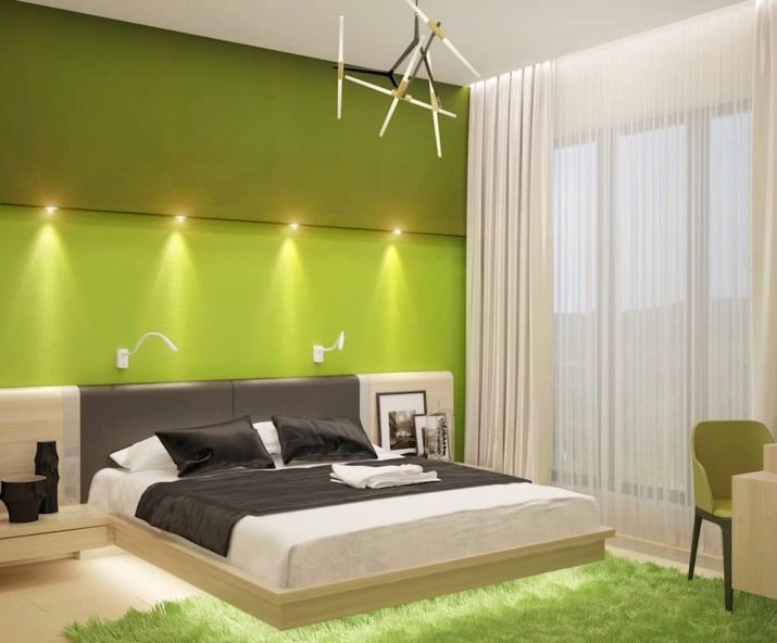 - The color of wonderful greenery and a carpet in the form of grass make the bedroom interior fresh, cozy and attractive.