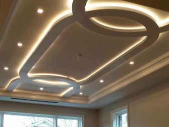 The use of drywall for decorating the ceiling in residential premises is determined both by the characteristics of the building material itself and by the possibilities that it provides for the implementation of extraordinary design developments. GKL is very plastic, which allows you to create complex multi-tiered structures and figures of various shapes: