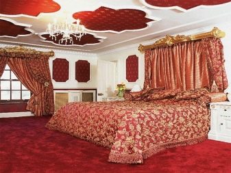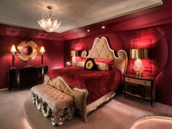 It is advisable not to use red in the decoration of the bedroom in a clean form. You can replace it with burgundy or wine red, optimal for decorating the premises in the Baroque style.