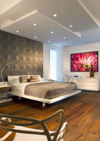When creating the design of the bedroom, one must take into account that the suspended ceiling should become part of the entire interior design and interact in concert with other elements.