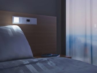 The task of the "point" near the bedside table is obvious - connecting a small lamp or sconce used as a night lamp.