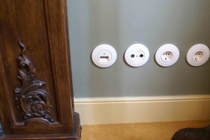 Such an interior style involves rounded outlines and rather large sizes, and therefore the sockets in the above case must be solid in terms of dimensional parameters (rectangular, round or square).