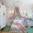 Pay particular attention to textiles. It is permissible to use floral abstractions on bedding, curtains and even on walls. In addition to light fabrics, pink, peach, and lilac colors can be found in textile accessories.