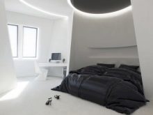 A number of concepts that can be used to create an interior in your bedroom are among the ultra-modern. The principles of minimalism taken as a basis can be supplemented by unusual futuristic forms and accessories or include eco-elements: