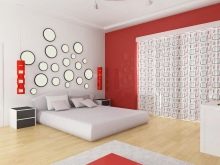 This modern interior style is very popular among those who like to combine simplicity, style and plenty of space in the rooms of their home. The bedroom in a minimalist style is characterized by light colors of the walls, but sometimes they are decorated differently - one wall, acting as an accent, painted in a different pastel shade or trimmed with wood. The flooring should be plain and close in color to the walls. It is advisable that the room has large windows that can be decorated with straight curtains over the entire length of the wall or shutters.