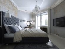 When making repairs in such a bedroom, remember that the availability of modern technology is an important element. A flat-screen TV hanging on the wall opposite the bed will fit perfectly into the concept.