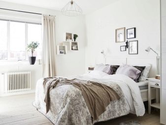 The main characteristics of the sleeping room, designed in a Scandinavian concept, are practicality, well-thought-out layout, a bias in minimalism, a natural look. The main colors of this room are light shades - white, gray, beige, taken in a matte version. Of the dark colors, it is acceptable to use brown and dark gray, and for accent you can take turquoise, green or yellow.