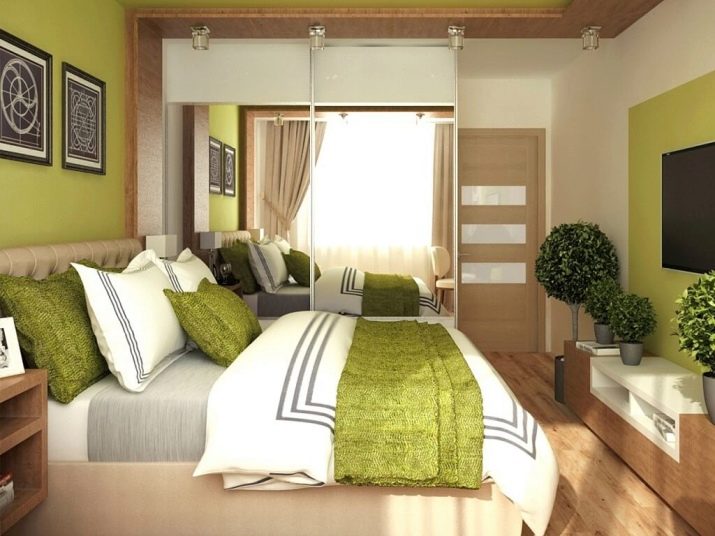 - Nothing gives a more relaxed atmosphere like a bedroom in eco style, decorated in pale green colors and successfully complemented by indoor plants.