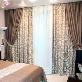 The expected result from combined curtains can only be in the case of a competent combination of them with other interior items. For example, experts recommend sewing a bedspread on a bed of fabric of the same type as the curtain. The ideal option is when there is an ornament on the curtains, and the bedspread repeats this shade exactly.