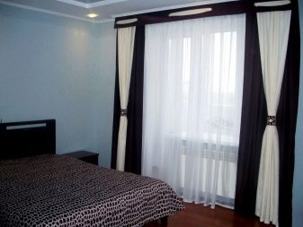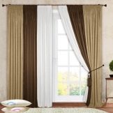 Combined curtains in two colors look most advantageous in the design of any bedroom - spacious and not very. The main thing is to correctly observe the laws of design: the whole room, including window openings, must be designed in the same style.