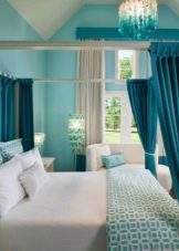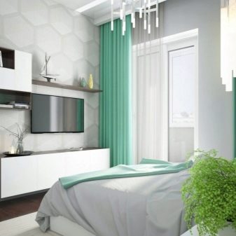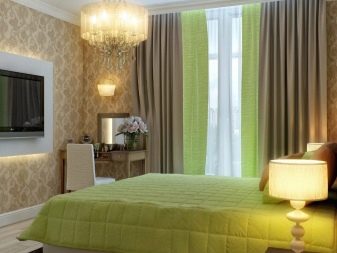 - Monochrome. Coloring options for curtains that are in the same sector of the color wheel: green, emerald, lettuce or malachite. In this case, you get an elegant, unusual design of the bedroom. In addition, in the case of this color scheme, you will feel peaceful and relaxed while relaxing in bed.