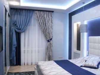 The most affordable option to make your bedroom original and elegant is to combine curtains not only in different colors, but also from different fabrics. You need to choose them, given the design, color, structure and ability to transmit daylight. For example, if your room is decorated in the loft style, then you should not decorate it with variegated fabrics that are more suitable for the Provence style. If the room is located on the north side, it is better to pick up curtains in warm, saturated colors, then the atmosphere of a sunny, warm day is created in the bedroom. And vice versa, if the bedroom has a lot of color, and it is located on the south side, it is more logical to place curtains of cold tones here.