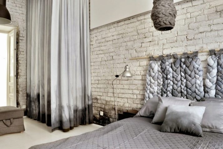 Gray curtains will look harmoniously in an ensemble with brick walls or minimal decoration in the bedroom.