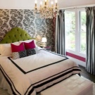 - Emphasis. If the window is designed by you as the main emphasis, it should attract eyes. Saturated tones, intricate ornament, patterns will do. Be careful with this method if the bedroom is small: bright colors, catchy patterns visually reduce it. You can take decorative items and furniture as a guide, not walls.