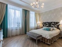 Do not dwell on too bright shades of curtains. Do not forget that the main purpose of the bedroom is sleep and relaxation.