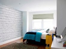 - if the wallpaper is made in the form of an imitation of material (stone, brick), it is best to limit yourself to blinds, roll options without a print;