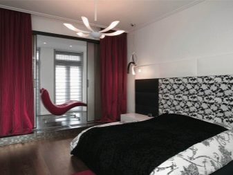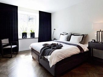 The most popular option for the bedroom is black and white, where white acts as a base, and black as an addition.