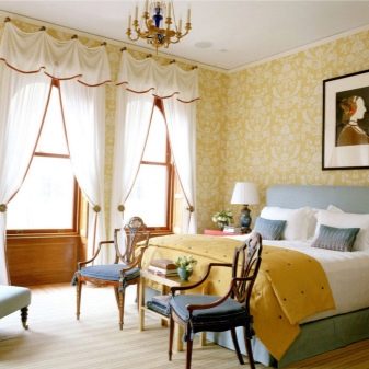 - large curtains, even curtains, lambrequins are great for wallpapers with classic patterns;