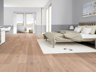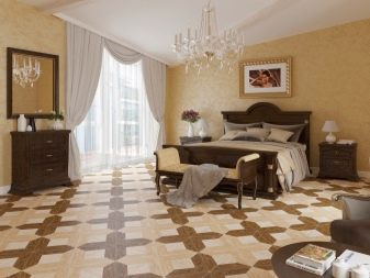 It is not recommended to make the floor in the bedroom in bright colors. The most suitable shades are brown, gray, peach. Common design styles in the bedroom - classic, high-tech, ethno and country.