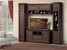 The same manufacturer made Florence modelhaving a completely different style and design. "Florence" is a modern retro style, equipped with carved details, curly fittings. The wall is completely bulky, 1.6 m wide, but of sufficient height - 2.16 m. There are two color options - light and dark.