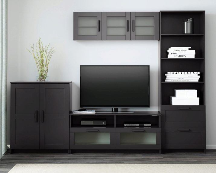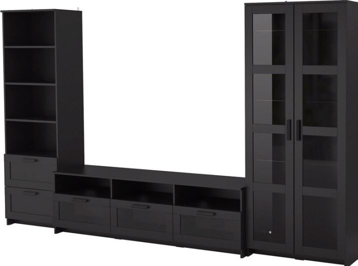 For the Ikea Brimnes Model a combination of modules is typical, the complete set can be made as you want. The presence of straight lines and simple design are the hallmarks of the model. The color in which the model is produced is black. The undoubted advantages include holes on the rear panel, designed for wires. And you can also choose the side of the door opening, adjust the height of the shelves and the distance between them.