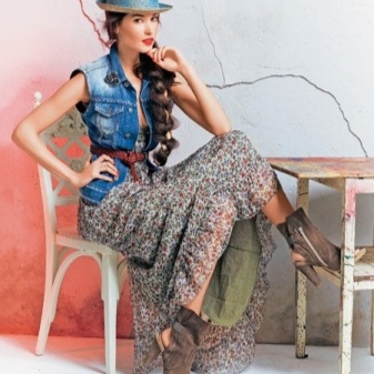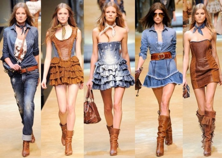In its pure form, cowboy style is not used. Tall coarse boots, a wide-brimmed hat, a leather belt look quite aggressive. However, the notes of the cowboy world can add a twist to the image. For example, it can be a hat adapted to the female style or light brown boots with a high top.