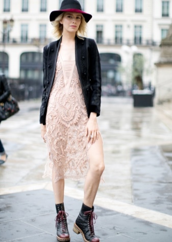 - American girls can safely combine what seems incompatible to us. For example, an openwork light dress with rough boots and a leather jacket. Although this image looks very good.