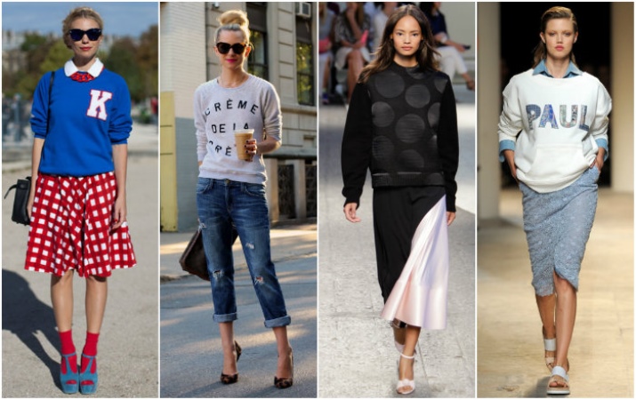 - Simple cut, combination of styles. Clothing should be tight, semi-tight or loose. Overseas fashionable to combine elements with a different silhouette. For example, skinny jeans with a wide sweater.