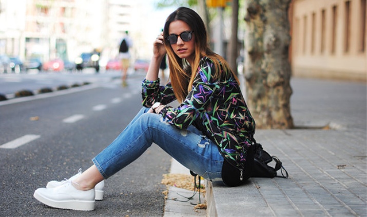 Americans really like the sporty style. In the wardrobe of overseas girls, there are far from a single copy of t-shirts, T-shirts, various sports jackets and, undoubtedly, sneakers.