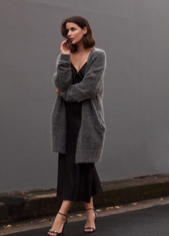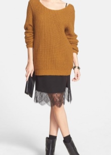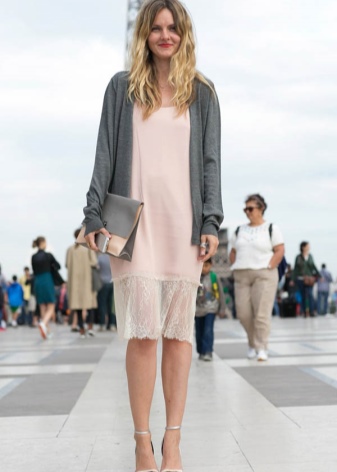 - In winter, wardrobe items resembling underwear combine well with knitwear. Choosing a voluminous knitted cardigan for a dress with lace, you can create a very feminine and sophisticated look.