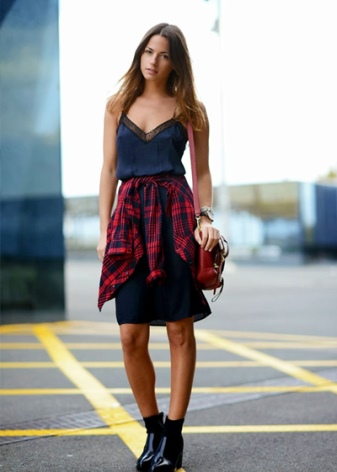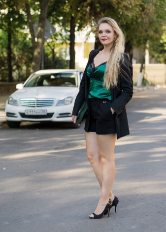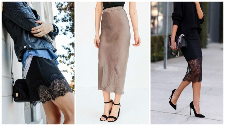 - A satin top with lace or a combination dress should not be combined with defiant mini-length things, it is better to choose strict things. A provocative thing is already present in the image, so makeup and accessories should also be moderate.