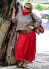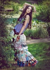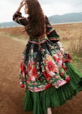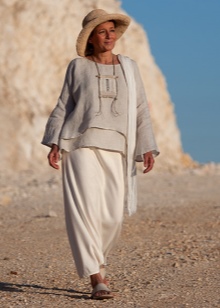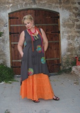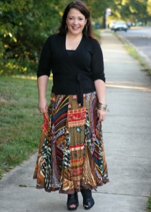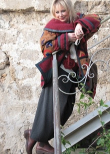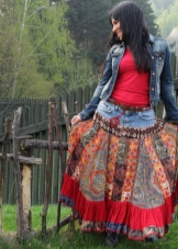 In the summer, for a walk you can wear a flared skirt of maximum length with a linen or cotton blouse decorated with lace, ruffles, ethnic ornaments or fringe. Perfectly combined knitted boleros and sundresses of a free cut.