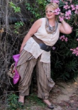 The use of large and catchy accessories (massive bracelets, elongated pendants, long beads in several tiers and scarves) will help to divert attention from the features of the figure. But it is important to remember that all jewelry that complements the bow should be exclusively natural, like the fabrics used. The best option is handmade handmade accessories.