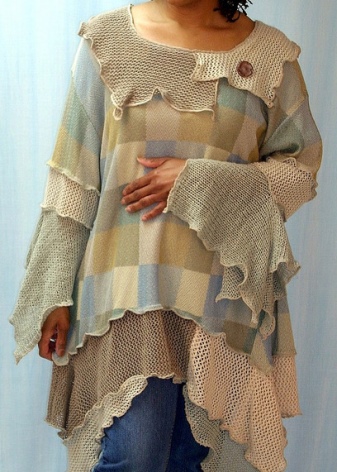- Cut. Things should not hang in a bag and resemble a shapeless cover. It is worth choosing models decorated with vertical patterns that “stretch” the figure.