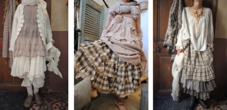 - layering in the form of tiered skirts, ruffles, or wearing several parts, dressed one on top of the other;